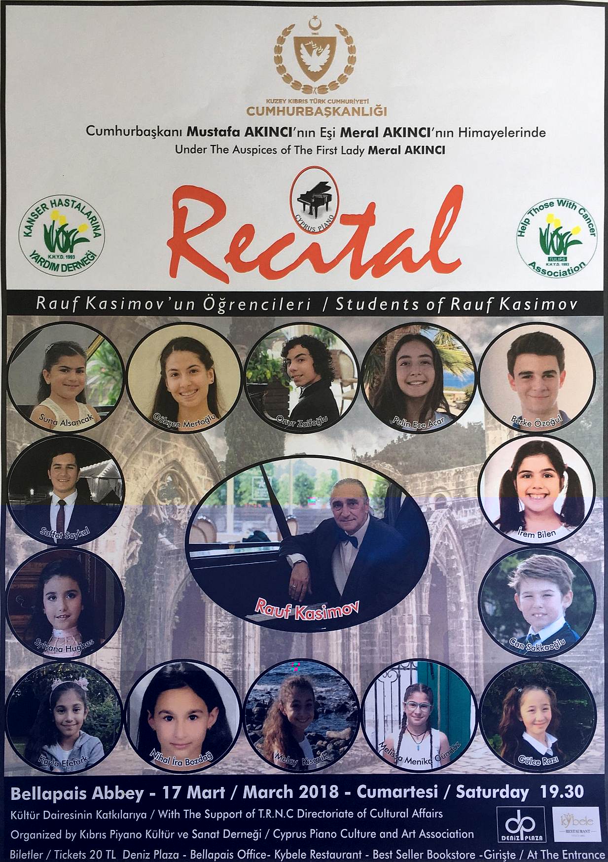 Don't forgot the Classical music concert will take place at Bellapais Abbey on Saturday, 17th March commencing at 1930. Tickets cost just TL20 and are available from outlets shown on the poster or at the door on the night.