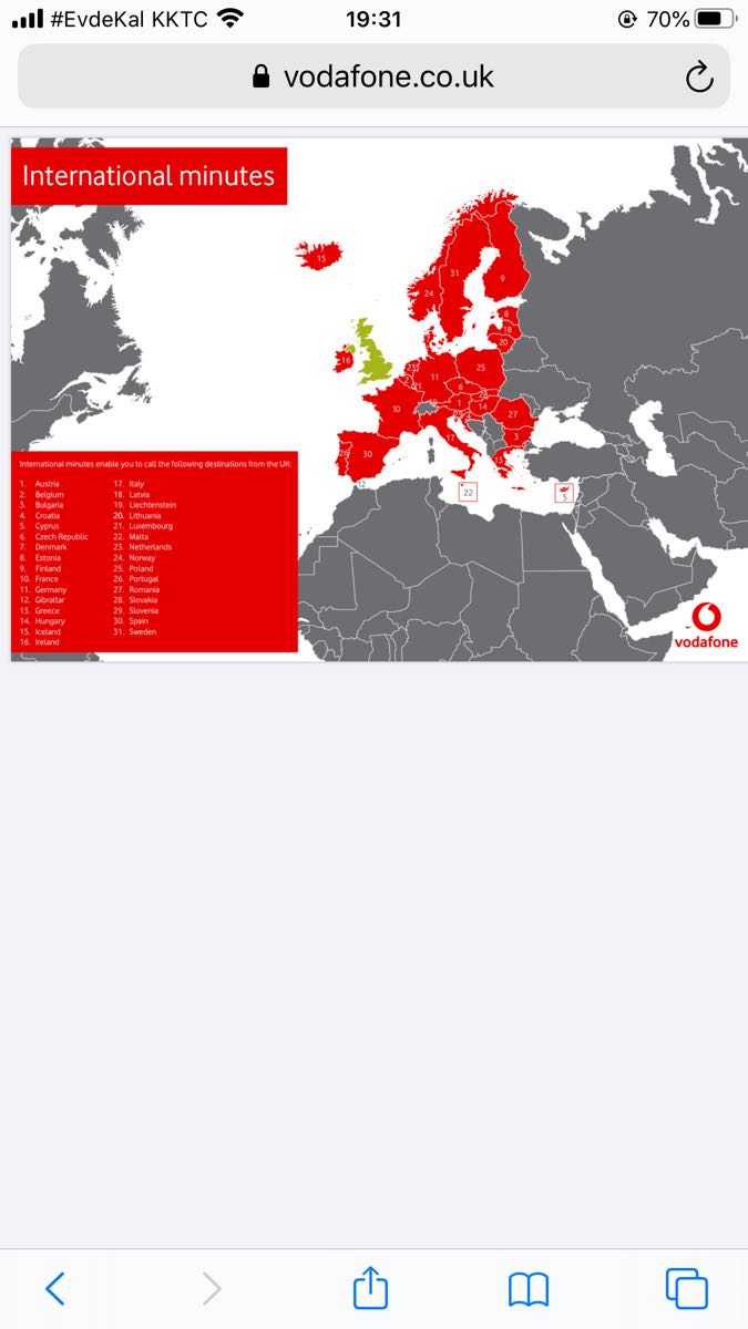 Vodafone UK customer service have kindly (without quibble) extended free roaming charges to me ‘whilst in Turkey’ (Cyprus) until 7th July and have agreed to refund my international call from UK to ‘Turkey’ (Cyprus) but they still can’t get their heads round the fact that I am in Turkish Republic of Northern Cyprus, not Turkey!