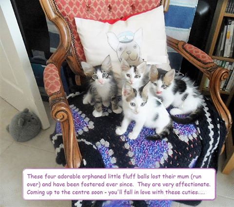 Yes, we have yet more kitties looking for homes! Here's another group of lovelies all just waiting for a comfy bed or lap to lie on. Just a reminder, the centre is open every day between 9am and 1pm and anyone looking to home a kitten should bring a cat carrier with them.