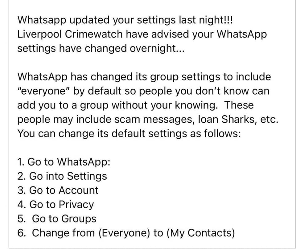 Pleased to hear it but think it strange. Our phones. tablets and computers are all locked as tight as possible for security especially Facebook and Whatsapp (owned by FB) and my Whatsapp was certainly not open to everyone so they had changed it. I find them a necessary evil and it is often used so people can find where we live as giving directions to someone whose first language isn't English is hopeless.