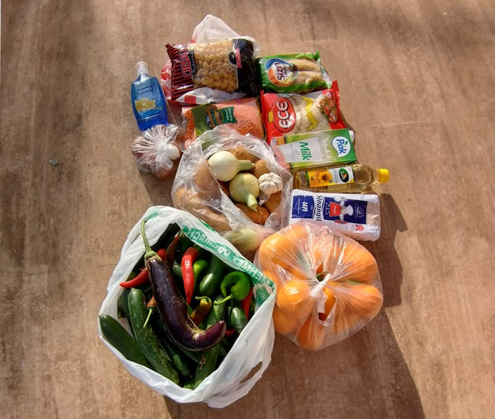 Here is a 'sample' of what we have managed to put together this time as a 'help packet' , with an estimated cost of 50-60 TL per packet, exact costs to come later once there is a chance to properly tally everything up and calculate such. It contains free elements (cukes, oranges) as well as paid for ones, some bought in bulk at substantial discount and some as individual elements from supermarkets with minimal discount.