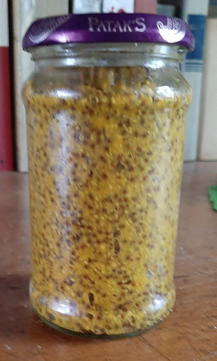 Here is the picture of my first batch , quite hot wholegrain, definitely worth making. I will make some and different recipes. It looses it's hotness after a while so won't be rushing to make lots, but every time we are running low - or I want a present for somebody - I will make another batch - will grind some seeds in my old coffee grinder to make a smooth one as well.