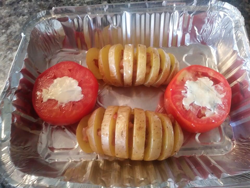 Hasselbaink potatoes with chopped bacon + tomatoes stuffed with blue cheese 120751314_673333749981219_4846400073616903120_n.jpg