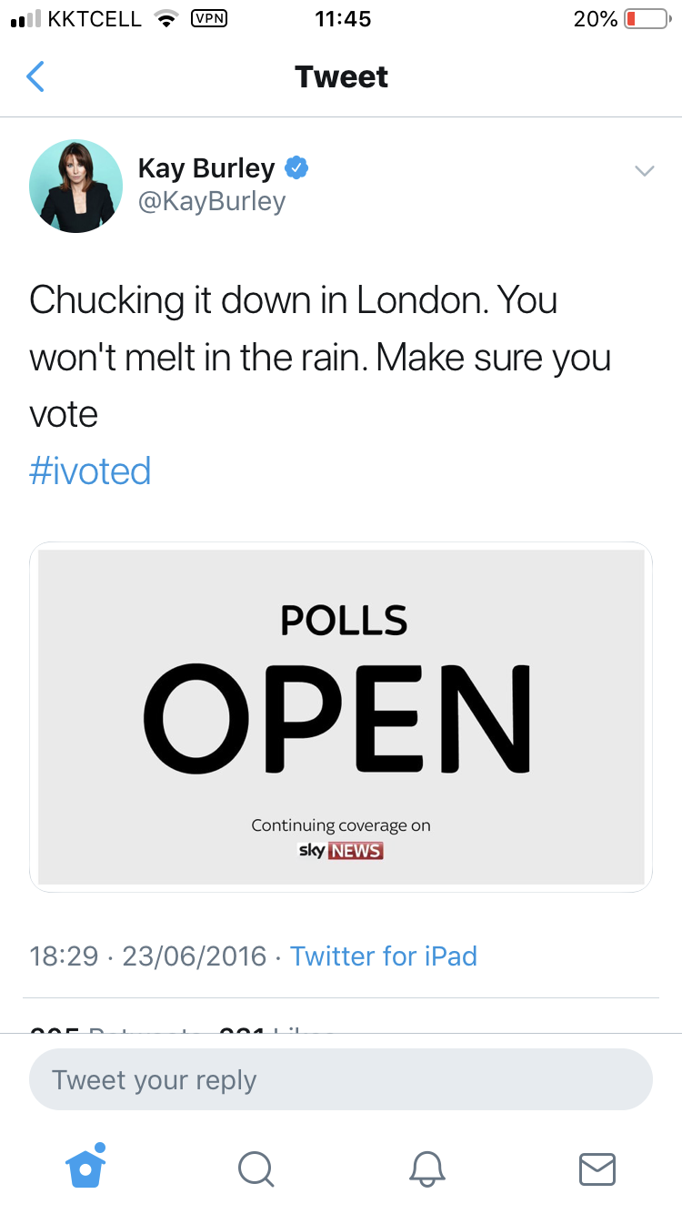 Here is a video of her letting Femi (a remain activist) take over the interviewing. When the victim points out that Kay might be a wee bit biased she jokes with her new friend Femi and says she didn't even vote.