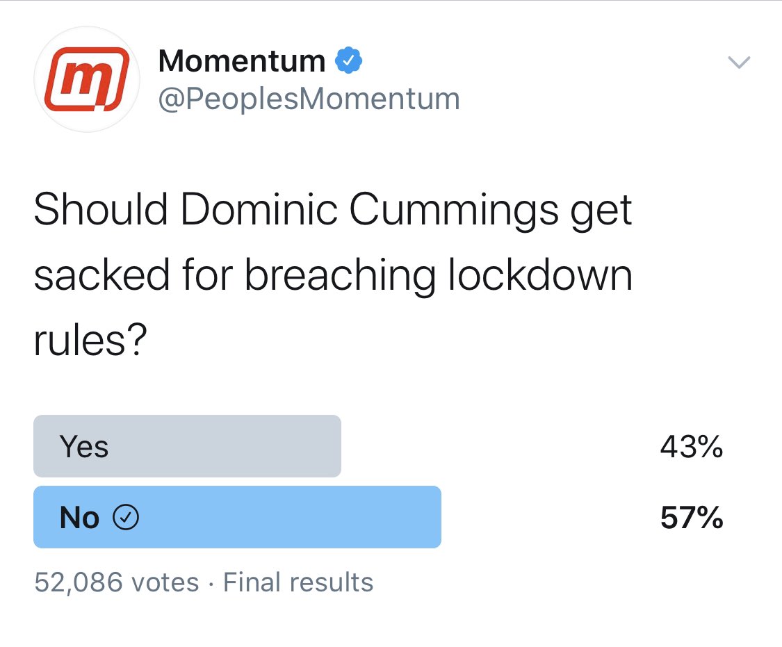 Translation I for one only really care that this gets Cummings to resign or be sacked.erol wrote: ↑Mon 25 May 2020 2:10 pm