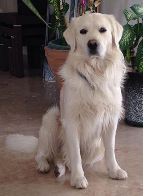 I believe this is the same missing dog, as my friend gave the exact same description of her dog who is missing. Male, blue collar, Ozankoy area, light beige Golden Retriever by the name of Lucky. Please everyone keep an eye out as he is desperately missed.
