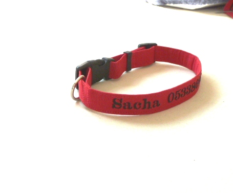 OOh YES, I forgot the embroidered collar/contact details. They are great. You can get them in different colours. Call into the KAR office and they can help you.