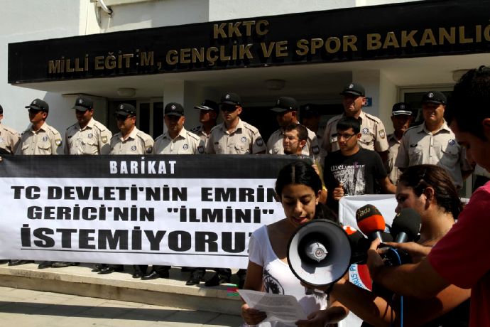 Various political and cultural groups marched together to the Ministry of Education in Lefkoşa today to protest about the foundations being laid on Friday for the first Islamic school to be in TRNC. The protestors feel that the Hala Sultan İlahiyat Koleji is all part of Ankara's agenda for TRNC.