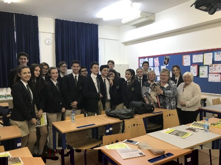 On Wednesday February 14TH the Education team, Maggie Smith, Carole Widdison, Carol Easton and of course Annie, Maggie`s Cyprus Terrier, visited the English school of Kyrenia at Bellapais to speak to the after school club Kyrenia St. Hilarion Interacts. It is run by Naran Gemicioğlu of the Kyrenia St. Hilarion Rotary club and senior student Tanel who had already organised a visit by the club to KAR rescue centre in 2017. Tanel had previously done some volunteer work at the centre.