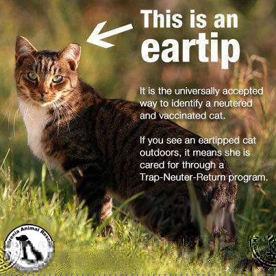 All cats that we neuter will have the tip cut off their left ear which is an International sign that they have been neutered.