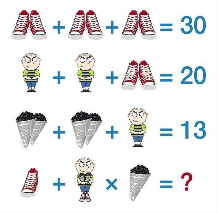 evil man holding 2 cones wearing pair of shoes = 9+10 = 19 ?