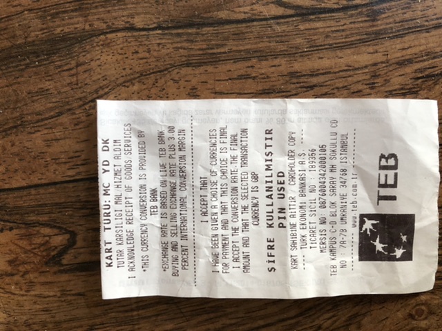 Anyway, just watch out for the TEB bank machines in future and always insist on paying in TL without currency conversion