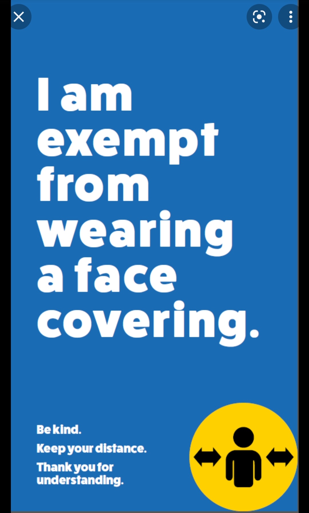 A lost of posters will be of UK heritage and I know that whilst they are not liable to wear a mask they would feel more comfortable having something to show to the mask old bill. Reasons for not having to wear a mask include them making you feel stressed - and no-one is allowed to challenge what you say.