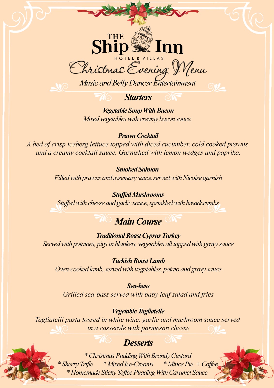 Christmas Carvery with traditional roasts and trimmings, soup of the day and dessert buffet with live band Niyal Öztürk & The Trio of your favourite songs