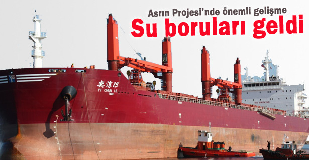 The pipes that are to carry the water from the underwater pipes to the Geçitköy Reservoir have arrived in Mağusa on apparently the biggest ship ever to dock in a TRNC harbour.