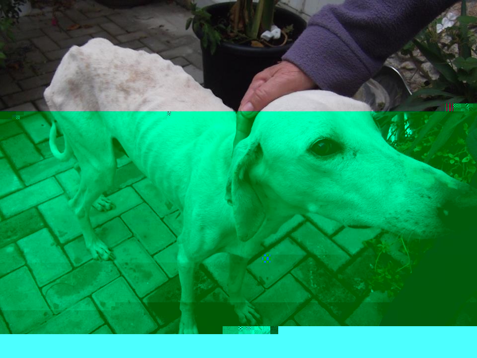 The greyhound in the photo is putting on weight and becoming more confident, he is waiting to be adopted x